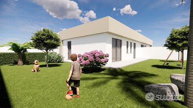 CV113 Se stai cercando una villetta spaziosa da poter personalizzare secondo le Tue esigenze in un contesto tranquillo a pochi minuti dalla città, con spazio verde a giardino e zona per piscina e barbecue. Proponiamo Villetta, in corso di approvazione di progetto . Le villette saranno Realizzate su un unico livello, per una superficie commerciale complessiva di mq. 150 circa, si compone - da : ingresso - salone - cucina, lavanderia, disimpegno, doppi servizi, riposto, tre camere di cui una con cabina armadi, oltre veranda esterna, con cisterna autonoma di mc. 10 per riserva idrica. La superficie complessiva del lotto di pertinenza della singola Villetta è di mq.500 circa, lo spazio antistante è sistemato con pavimentazione ed aiuole, mentre lo spazio laterale e retrostante da sistemare a giardino, si presta bene sia alla creazione di angolo a barbecue, piscina e sia alla tenuta di animali di compagnia. Si possono effettuare modifiche interne per adattamenti all'esigenze personali , saranno servite di tutti gli impianti di fotovoltaico, solare termico , caldaia con piastre e climatizzatori. Maggiori informazioni chiamare in agenzia.