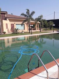 Dependance in splendida villa con piscina a pochi chilometri dal mare. L'immobile dispone di ampia cucina soggiorno con divano letto, camera da letto matrimoniale, bagno con doccia e bagno esterno. E' climatizzato. All'esterno troviamo: area barbecue, doccia esterna, lavatrice, lettini ed ombrelloni in piscina e delizioso giardino. Inoltre a disposizione due posti auto riservati.