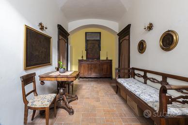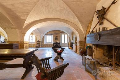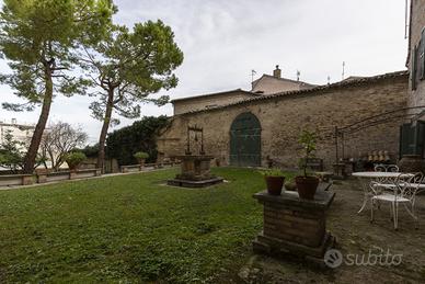 In Paese medievale nel cuore dell'entroterra marchigiano sulle colline di Osimo con ampio giardino. In pieno centro vendiamo dimora storica settecentesca affrescata e con giardino. Si tratta di un antico palazzo nobiliare disposto su tre livelli di pianta quadrata, per complessivi circa mq. 450 oltre a circa 500 mq. di giardino. L'immobile, risalente al XVIII secolo è vincolato dalla Soprintendenza ai Beni Architettonici. Piano terra: ingresso, tre vani con soffitti a volta a croce, servizi e ripostiglio. piano primo: dotato anche di un ingresso indipendente: piano nobile affrescato: salone con camino, due grandi camere, studio, servizio e ripostiglio. Piano seminterrato: unico locale con soffitti a volta a croce, camino e grotte sotterranee. Dal piano seminterrato si accede al grande giardino con pozzo e portone per passaggio all'esterno. Il soffitto delle scale è a cassettoni decorato con ceramiche fatte a mano. Il salone del piano nobile, affrescato da Melchior Jeli, pittore settecentesco noto per affreschi e dipinti in case e chiese, ha nelle pareti scene orientali, carte di Francia ottocentesche molto rare e ben conservate. E poi ancora porte decorate e pavimenti in cotto originale. Questo salone ha ottenuto pubblicazioni relative alle Dimore Storiche Italiane. Richiesta Euro 495.000 Possibilità di suddividere l'immobile in due unità autonome.