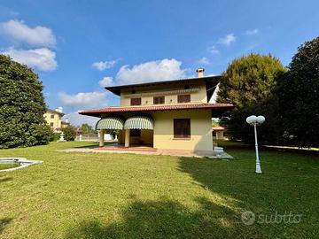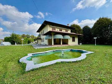 In una cornice esclusiva e riservata, questa villa indipendente si distingue per la sua eleganza architettonica e per la generosità degli spazi, distribuiti su quattro livelli. Circondata da un parco privato di 2.000 mq arricchito da fontane ornamentali con dettagli scenografici che completano l'atmosfera di charme, offre un'esperienza abitativa di prestigio, pensata per chi desidera vivere in un ambiente che esprima personalità, status e comfort. La zona giorno al piano terra accoglie con due camere matrimoniali e un bagno, mentre il primo piano rivela ambienti raffinati come lo studio, una cucina funzionale, una camera padronale con bagno e terrazzo privato, una camera singola, un terzo bagno e un secondo terrazzo di grande impatto. La soffitta, ampia e al grezzo, è pronta per essere trasformata secondo le esigenze più personali. Il piano seminterrato, invece, ospita una cantina, vani tecnici e un garage comodo e spazioso. In più, la dependance, completamente autonoma, grazie alla presenza di cucina, bagno e cantina, è ideale per intrattenere ospiti o organizzare eventi all'aperto e può essere facilmente riconvertita in una seconda unità residenziale. Questa residenza è perfetta per una famiglia numerosa, ma anche per chi cerca un'abitazione che rappresenti un traguardo, un sogno realizzato, un luogo dove vivere con stile. Rif. 224152 Per maggiori informazioni visita www.grupposirio.com.