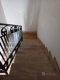 La villetta è composta piano terra, con due locali garage di cui uno con ufficio, scala interna per accedere al piano primo, composto da ingresso, due camere con unico balcone, ampio soggiorno, cucina con balcone, cucinino, bagno, scala interna per accedere al piano secondo alla mansarda calpestabile ma non abitabile.