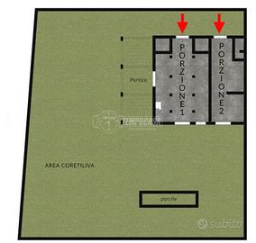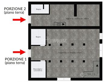 - PIANO TERRA: Ingresso su ampio e luminoso soggiorno con angolo cottura, con accesso diretto al portico esterno che gode di un'ampia area cortiliva, completa il piano un ampio bagno con doccia