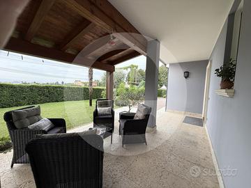 Il giardino comune è arricchito da pensiline esterne ideali per rilassarsi all'aria aperta; dispone inoltre di irrigazione sotterranea e fontana potabile profonda 60m. Sicurezza garantita grazie alla telecamera esterna e ai centralini d'allarme installati su tutta l'abitazione.