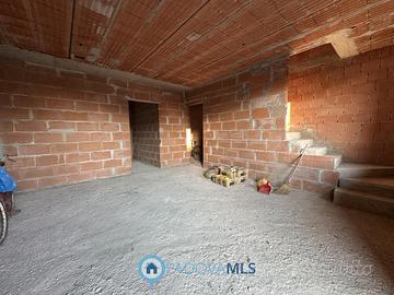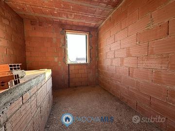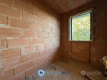 A Due Carrare, in posizione comoda ai principali servizi, si propone porzione centrale di quadrifamiliare. L'abitazione dispone di un piccolo giardino sul fronte che introduce all'ingresso con un soggiorno ampio e luminoso, una cucina abitabile con accesso a un poggiolo e un bagno. Al piano seminterrato si trovano un garage di generose dimensioni e una taverna, mentre al primo piano sono presenti tre camere da letto e un secondo bagno. L'immobile si presenta internamente al grezzo, quindi da completare e personalizzare nelle finiture, e viene venduto nello stato attuale non ultimato.