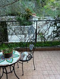 Immersa nel verde a pochi passi dal centro di Picinisco , in residence Duplex composto da ingresso indipendente con terrazzo, salone / cucina Open camino cucina con isola completa , 2 terrazza con vista Panoramica ,1 wc con cabina doccia Idro e ripostiglio, accesso 1piano Con scala interna in legno wenghe, composta da cameretta arredata ,camera da letto con letto a cassettone, cabina armadio , 1 wc con vasca idromassaggio doppio lavable .