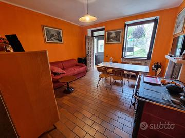 Al primo livello troviamo un tinello con stufa a legna, cucina, sala e vano scale.