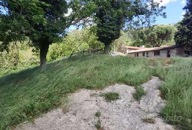 dimensioni minori alla principale; allestremità sud è posizionato un volume ad un solo piano suddiviso in due ambienti, un locale destinato a Centrale Termica ed un monolocale con soppalco e bagno, entrambe con ingresso indipendente dallesterno. La porzione centrale del fabbricato si eleva al piano superiore e tramite la scala interna si accede al piano primo che, disimpegnato da un corridoio centrale è suddiviso in vari ambienti: cinque camere, quattro bagni, due ripostigli ed una zona cucina-pranzo. Terreni di complessivi ha 5.84.82