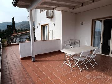 Elegant Villa Apartment in Mondello - Comfort, Privacy, and Relaxation Near the Sea Set in a charming villa in the beautiful seaside resort of Mondello, this elegant fully furnished apartment is the perfect choice for those seeking a relaxing holiday just minutes from the beach, with all the comforts of a spacious and welcoming home. The apartment opens onto a bright and inviting double living room, offering direct access to a wonderful 70 sqm panoramic terrace, complete with a covered patio--ideal for enjoying breakfast in the open air, long summer lunches, or peaceful evenings in total relaxation. The sleeping area includes two large double bedrooms, tastefully furnished to ensure comfort and tranquility. The property also features a charming fully equipped kitchen, a modern bathroom with shower, and a practical storage room. One of the highlights of this property is the stunning 140 sqm rooftop terrace, entirely reserved for guests and included in the rental. This exclusive outdoor space is perfect for sunbathing, relaxing in complete privacy, and enjoying the unique atmosphere of summer in Mondello. To complete the property, guests will also benefit from a private parking space, an added convenience for a stress-free stay. This apartment is an ideal solution for anyone looking to experience Mondello in style, combining the beauty of the sea with the comfort, privacy, and elegance of a refined villa home. Available for seasonal rental.