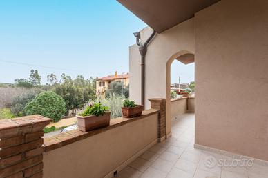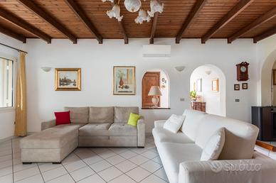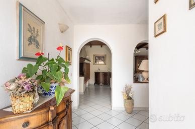 La villa è circondata da un giardino privato finemente curato, perfetto per momenti di relax e convivialità all'aria aperta. L'accesso avviene tramite eleganti cancelli in ferro battuto, che introducono a un vialetto privato e a una spaziosa veranda coperta pavimentata in cotto, ideale per pranzi e cene all'aperto, già attrezzata con tavolo esterno. Le ampie porte-finestre assicurano un'eccellente luminosità naturale e un collegamento armonioso tra gli spazi interni ed esterni.