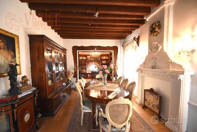Villa Veneta - Casa Padronale Nel suggestivo contesto del Graticolato Romano, a pochi minuti dal centro di Santa Maria di Sala bellissima casa padronale in pianta quadra, distribuita su tre livelli, per un totale di circa 380 mq calpestabili, mentre la porzione rustica annessa, attualmente al grezzo offre ulteriori 250 mq di potenziale superficie abitabile, ideale per molteplici usi: dependance per gli ospiti, Architettura ed eleganza senza tempo. L'ingresso, maestoso e accogliente, introduce alla residenza attraverso una scala ellittica di grande valore architettonico, cuore pulsante della Villa e simbolo della sua raffinatezza. Il piano terra con spazi pensati per il convivio e la rappresentanza: *Ampia sala da pranzo, studio, Salotto intimo con camino originale d'epoca. Cucina con affaccio diretto sul portico, Bagno elegante con doccia e pratico antibagno, predisposto per guardaroba su misura. Zona notte attraverso l'imponente scala in legno, si accede al piano nobile, dove trovano spazio: quattro ampie camere da letto, due bagni, cabina armadio e salone di rappresentanza. Il sottotetto, completamente abitabile, ospita un salone open-space di oltre 120 mq, ideale per sala musica, sala giochi o area relax. Al centro del curato giardino spicca un antico pozzo, ulteriore testimonianza del passato. Completa la proprietà l'antico complesso di scuderie e fienile, attualmente al grezzo, ma trasformabile in residenza, studio o dependance. Il primo piano della Villa è facilmente collegabile a questo spazio tramite l'apertura di una semplice porta nel muro divisorio, permettendo un'ulteriore espansione degli ambienti del piano nobile. *Riscaldamento a pavimento al piano terra, Riscaldamento a radiatori al piano superiore, *Arredi d'epoca, integrati con gusto e armonia, disponibili su richiesta con valutazione separata. *Superficie commerciale: 737 mq - Superficie calpestabile: 551 mq *Camere da letto: 4 - Bagni: 3 - Vani totali: 10 *Questa Villa è una rara oppor