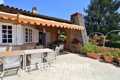 Rif: 15691 - 09/03/2026 (193519192) - Nel cuore dei Castelli Romani, nel comune di Velletri, RockAgent Spa propone in vendita una bellissima villa signorile dal fascino autentico, immersa in un contesto riservato e tranquillo, circondata dal verde. Una residenza ideale per chi cerca spazio, eleganza e contatto con la natura, a meno di un'ora da Roma, in una posizione panoramica e silenziosa. Alla villa, costantemente mantenuta in condizioni impeccabili, si accede tramite un ingresso esclusivo, preceduto da un suggestivo viale alberato. Questo conduce al primo emozionante incontro con il giardino, vero fiore all'occhiello della proprietà: oltre 5.000 mq di parco privato, curato nei minimi dettagli, tra vialetti ordinati, piante pregiate, colori e profumi che avvolgono la dimora in un'atmosfera di armonia. La villa si sviluppa su due livelli collegati da un'elegante scala interna. Il piano superiore ospita l'ingresso principale, protetto da un raffinato portico. Superata la soglia, ci accoglie un ampio e luminoso triplo salone con pavimenti in parquet e finiture di pregio. Alla destra, un corridoio introduce alla zona notte, dove domina la camera padronale: ampia, elegante, con bagno esclusivo. Completano il livello altre tre camere da letto e un secondo bagno, anch'esso spazioso e funzionale. La grande cucina abitabile, anch'essa molto luminosa, è dotata di dispensa ed è perfetta per la vita quotidiana. All'esterno si apre una splendida terrazza panoramica, esposta a sud e baciata dal sole per gran parte della giornata, con vista che spazia fino al mare e al promontorio del Circeo. Qui trovano posto una vasca/piscina idromassaggio riscaldata con cromoterapia, utilizzabile tutto l'anno, e un angolo barbecue, ideale per cene all'aperto o momenti di relax. Il piano inferiore accoglie una versatile reception, un terzo bagno, e uno studio/open space personalizzabile, perfett - Classe: F - IPE: 175.00 kWh/mq anno