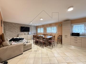 Al piano terra troviamo una generosa taverna ideale per cene conviviali o momenti relax, dotata di camino che dona calore all'ambiente ed è servita da bagno/lavanderia funzionale. Il garage doppio garantisce ampio spazio per auto e biciclette mentre l'area esterna pavimentata permette massima praticità e zero manutenzione verde.