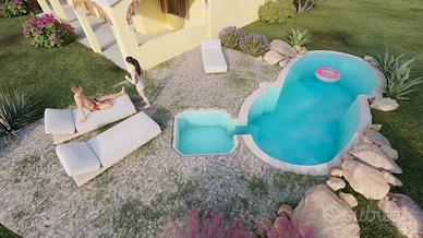 VILLASIMIUS - Nel cuore del paese, nei pressi dalle meravigliose spiagge, elegante villa caposchiera con piscina prossima alla realizzazione.