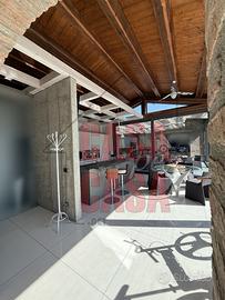 Dalla zona giorno al piano superiore una scala in ferro lavorata a mano da artigiani della zona conduce ad una romantica camera matrimoniale dotata di cabina armadio su misura ed area palestra privata. Questa disposizione offre privacy senza compromettere la comodità quotidiana.