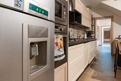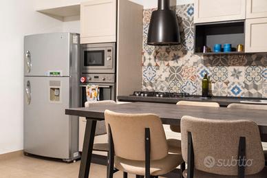 La proprietà accoglie gli ospiti con un ampio e raffinato soggiorno, ideale per momenti di relax o per vivere la convivialità con famiglia e amici. La zona giorno comprende inoltre una cucina abitabile ben organizzata, perfetta per chi ama cucinare e godersi la quotidianità in un ambiente comodo e funzionale.