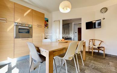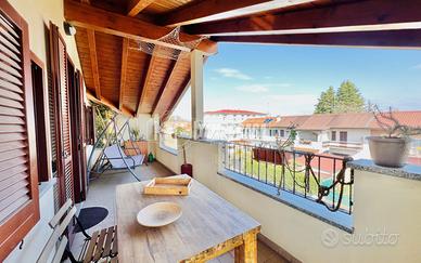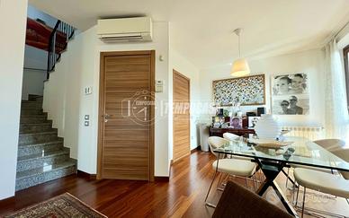 Il piano primo, dove si sviluppa l'appartamento padronale, si viene subito accolti da un ampio soggiorno, estremamente luminoso, grazie alle grandi vetrate che lasciano entrare la luce naturale per tutta la giornata. Lo spazio, ben distribuito, si presta perfettamente come zona relax. Proseguendo troviamo la cucina abitabile moderna e funzionale dove si accede a un ampio balcone.
