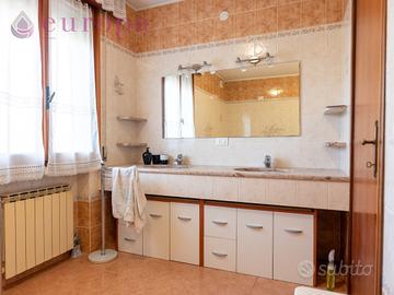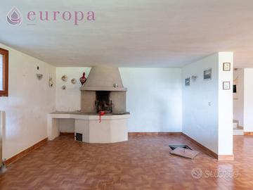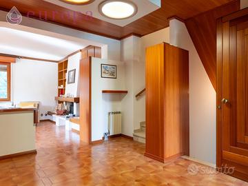 L'abitazione si sviluppa su piani sfalsati e accoglie con un ingresso raffinato, che introduce a una cucina abitabile spaziosa, un ampio soggiorno con caminetto e zona pranzo, entrambi affacciati su un terrazzo coperto vivibile, perfetto per pranzi all'aperto e momenti di relax. La casa è dotata di due bagni e la zona notte, comprensiva di tre camere matrimoniali, garantisce privacy e comfort per tutta la famiglia.