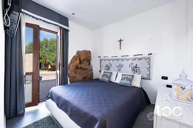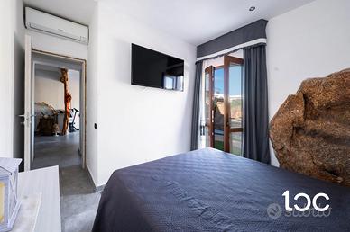 All'ingresso si viene accolti da un ampio cortile privato, impreziosito dalle caratteristiche rocce granitiche sarde, che donano autenticità e charme all'ambiente esterno.