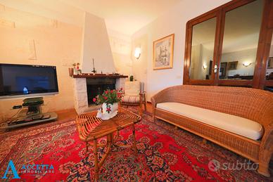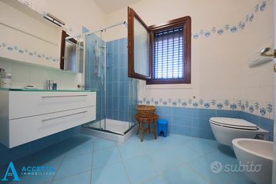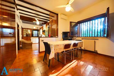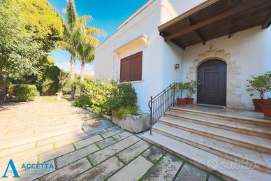 ESCLUSIVA PROPRIETA', CON AMPIO GIARDINO IN VENDITA IN LOCALITA' LAMA, PRESSO VIA GIRASOLI - TARANTO. Proponiamo in vendita, in bellissima zona di Lama, a circa 330 mt. dal mare, una proprietà immobiliare signorile sviluppata su due livelli, realizzati su un ampia area di circa 1170 mq.. La villa è composta al piano terra da: ingresso, un ampio doppio/salone con camino, una comoda sala pranzo con cucina, lavanderia, un bagno e spazioso porticato; salendo le scale al primo piano troviamo tre comode camera da letto, ciascuna con bagno personale, una quarta camera, quinto bagno, un balcone ed un terrazzino vista mare; completano la proprietà un vasto e meraviglioso giardino, attrezzato con prato e piante ornamentali di pregio. Situata in esclusiva e caratteristica zona residenziale, a due passi dal mare, la villa è immersa in una vera e propria oasi di tranquillità e riservatezza, una soluzione unica per chi cerca ampi spazi, inoltre l'immobile è dotato di accesso carrabile, impianto di riscaldamento autonomo, climatizzatori, persiane, infissi in legno, impianto di allarme, videocitofono, cancello elettrico motorizzato e porta blindata.