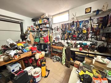 Ampi spazi di servizio: Deposito e Garage + una cantina attrezzata per la conservazione di olio e prodotti agricoli e il ricovero degli attre
