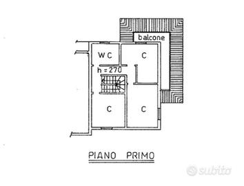 La soluzione è disposta su tre livelli. La zona giorno, al piano terra, comprende una cucina abitabile ed un ampio soggiorno oltre ad un bagno finestrato con doccia; al primo piano ci sono tre camere da letto, una servita di balcone ad angolo, ed un secondo bagno finestrato con vasca.