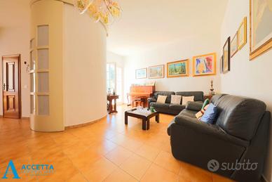 ESCLUSIVA PROPRIETA', CON AMPIO TERRENO IN VENDITA IN LAMA, PRESSO CIRCONVALLAZIONE DEI FIORI - TARANTO. Proponiamo in vendita, in esclusiva zona di Lama una proprietà immobiliare signorile sviluppata su due livelli, più garage e cantina, realizzata su un ampia area di circa 2.000 mq.; l'abitazione si sviluppa al piano rialzato, composto da: accogliente ingresso/soggiorno, ampio salone con camino, cucina, tre comode camere da letto, due bagni e un vano letto/studio; salendo caratteristiche scale a chiocciola, al primo piano troviamo una mansarda composta da un ampio vano, una stanza con bagno ed una grande terrazza una terrazza panoramica; completano la proprietà un grande garage con doppia basculante, una va tecnico ed una cantina. Situata in esclusiva e caratteristica zona residenziale di Lama, la villa è immersa in una vera e propria oasi di tranquillità e riservatezza, una soluzione unica per chi cerca ampi spazi, inoltre l'immobile è dotato di cappotto termico, impianto di riscaldamento autonomo (alimentato con doppia caldaia), infissi in legno con all'inglese.