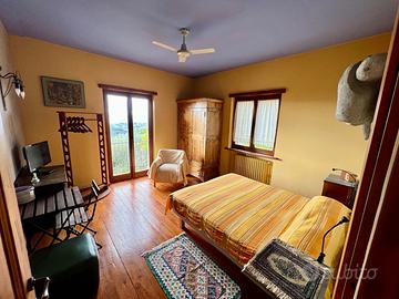 La villa indipendente di 280 mq, completata nel 2007, è costruita con materiali di alta qualità, tra cui una struttura in cemento armato e tamponature in mattoni "Pordon" speciali, che garantiscono un isolamento termico eccezionale per temperature ottimali tutto l'anno. Esposta a Sud-Ovest, gode di luce naturale durante tutto il giorno e di una vista panoramica mozzafiato sulla Valle del Tevere, con visibilità fino a 120 km (Monte Amiata).