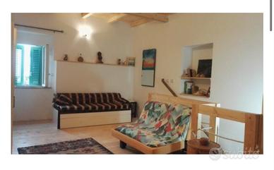 Casa autonoma dotata di tutti i comfort. Ben arredata e con due servizi, di cui uno con doccia. E' su due livelli: nel primo al piano terra si trova la cucina con un bagno ed un divano letto; al primo piano, con balcone vista mare, c'è un letto matrimoniale ed un divano letto alla francese ed un bagno. La casa si trova a 200mt dalla stazione ferroviaria e 300mt dal mare. Posta sulla strada principale è dotata di un parcheggio naturale davanti al portone di ingresso.