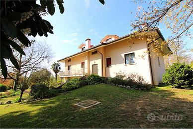 A cinque minuti dal Centro di Tricesimo, Splendida Villa Bifamiliare su di un lotto di 9000 mq. Posizionata in una tranquilla zona residenziale di sole Ville. L'Abitazione si sviluppa su tre livelli piu' l'interrato con la possibilità di viverla come Bifamiliare in quanto i due piani principali sono indipendenti e comprendono sia Zona Giorno che Zona Notte. Il Piano Primo si compone da un'ampia Zona Giorno con salotto di circa 40 mq. esposto a Sud, cucina separata, sala da pranzo, studio, due terrazze e Zona Notte con due camere da letto matrimoniali, una camera da letto singola e un bagno con vasca. Il Secondo Piano Mansardato è accessibile dall'interno dell'abitazione e si compone da un salotto con la cucina separata, da tre camere matrimoniali e da un bagno con doccia. Il Piano Terra e il Piano Interrato si compongono da vari locali tra cui taverna, lavanderia, bagno di servizio, cantina, centrale termica, e autorimessa per quattro auto. Esternamente il giardino circonda la casa per c. a. 9000 mq. ed è ricco di piante ad alto fusto che danno alla Casa una sensazione di totale privacy e tranquillità. Per informazioni ed eventuali visite: Federico Cumini - Tel: RIFERIMENTO: V001072 CLASSE ENERGETICA: F 300 kWh/m3 a