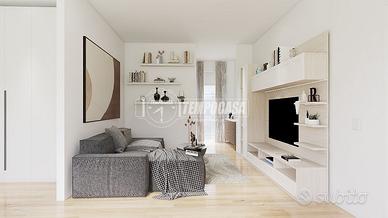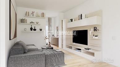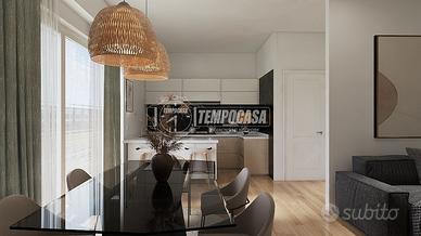All'interno, gli spazi risultano moderni e funzionali, con cucina a vista caratterizzata da rivestimenti in piastrelle di gres porcellanato nella parete attrezzata, perfetta fusione tra stile e praticità.