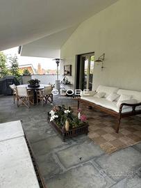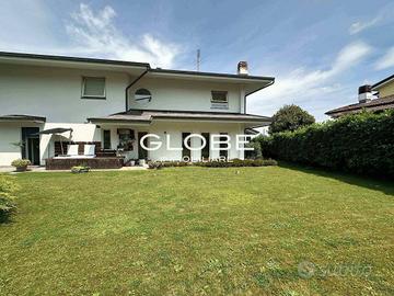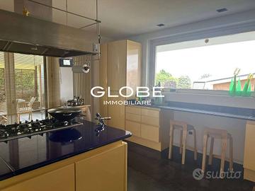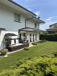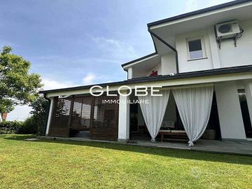 (193085724) - Fiano (TO) - In elegante comprensorio, vendesi villa di design In contesto esclusivo e riservato, proponiamo in vendita una prestigiosa villa di mq 310 circa, immersa nel verde e perfettamente integrata nel paesaggio circostante. La proprietà si distingue per una luminosa zona giorno di ampia metratura, impreziosita da vetrate a tutta altezza che regalano luce naturale per tutto l'arco della giornata, creando una continuità armoniosa tra ambienti interni ed esterni. Il soggiorno open space, con zona living e sala da pranzo, è caratterizzato da un elegante camino centrale rivestito in pietra e da una calda pavimentazione in legno di rovere. Le controsoffittature, dotate di faretti a incasso, aggiungono un tocco di eleganza agli spazi, creando un'illuminazione d'atmosfera che valorizza ogni dettaglio. La cucina, estremamente luminosa, è dotata di una pratica penisola con lavello e piano cottura, ed è completamente accessoriata. Adiacente si trova la zona pranzo, separabile all'occorrenza grazie a un sistema di pareti mobili, con affaccio su un suggestivo patio coperto, arredato con comodi divanetti da esterno: lo spazio ideale per cene estive o momenti di puro relax in ogni stagione. La zona notte, anch'essa pavimentata in legno di rovere e situata al piano superiore, ospita quattro ampie camere da letto, tra cui una suite padronale dotata di cabina armadio e bagno privato con vasca idromassaggio e idrodoccia. Il secondo bagno, elegante e funzionale, è rifinito con mosaico Bisazza e dispone sia di doccia che di vasca. Completano la proprietà: - Un giardino privato piantumato, dotato di area relax ideale per prendere il sole, zona barbecue con tavolo da esterno e possibilità di realizzare una piscina - Ampia autorimessa di circa 103 mq, oltre a posti auto esterni - Locale lavanderia dedicato - Piano interrato di circa 110 mq, suddivis - Classe: C - IPE: 97.19 kWh/mq anno