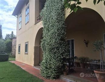 PIAN DEI GIULLARI - COLLINE DI ARCETRI Proponiamo affascinante e prestigiosa villa sulle colline di Arcetri dei primi del '900, libera su 4 lati e circondata da giardino e terreno provato (12.000 mq). La villa è già suddivisa in 2 unità abitative. Il corpo principale si sviluppa al piano terra ed al piano primo; troviamo un ampio ingresso, salone doppio con camino, affascinante portico, sala da pranzo, doppi servizi e camera per gli ospiti. Passando al piano superiore troviamo la zona notte con 5 camere da letto, doppi servizi ed ulteriore loggia panoramica. Posta al secondo piano della villa abbiamo un'ulteriore unità abitativa alla quale si accede da ampia scala indipendente, dove troviamo una splendida zona giorno con angolo cottura, 2 ulteriori camere da letto, servizio e terrazzino panoramico. Completa la villa un annesso in muratura, attualmente utilizzato come box auto, disposto su 2 livelli. L'immobile si presenta in buone condizioni di manutenzione e vi si accede tramite cancello elettrico che porta ad un ampio parcheggio adiacente l'abitazione.