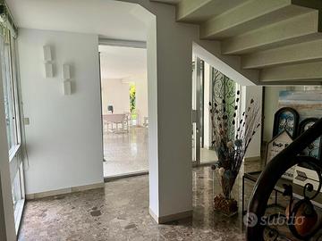 La villa si sviluppa su due livelli ed è impreziosita da un elemento davvero distintivo: una collinetta che accompagna dolcemente l'abitazione fino a raggiungere il terrazzo del piano primo, creando un perfetto equilibrio tra costruito e natura .