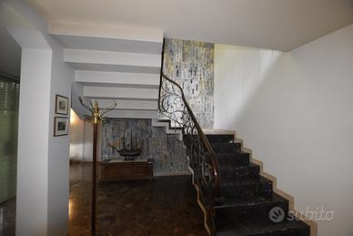 L'accesso avviene dal piano terra, dove un importante androne d'ingresso accoglie con una scala a vista, vero fulcro della casa e simbolo della sua anima architettonica.