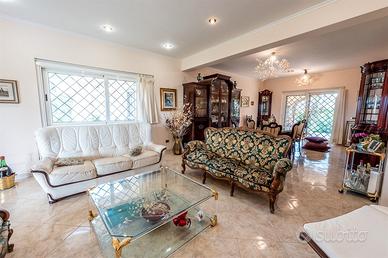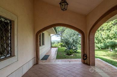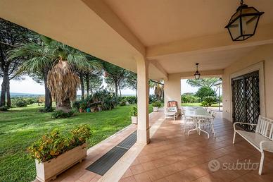 ThinkHome propone in vendita una straordinaria villa situata in un contesto panoramico, in una posizione elevata che offre un'ottima esposizione e una vista mozzafiato su Roma. La villa è stata costruita nel 2000, con materiali di alta qualità e dotata di finiture eleganti e ricercate. Gli interni spaziosi e luminosi sono progettati per garantire comfort e funzionalità. La proprietà dispone di una metratura complessiva di circa 400 mq disposta su tre livelli e si sviluppa su un lotto di terreno di circa 15.000 mq. Il piano terra offre un'area spaziosa e luminosa, caratterizzata da un ampio salone con camino e una zona pranzo, dotata di un'ampia finestra a vetrata che permette l'ingresso di molta luce naturale, due ampie porte finestre a vetro che offrono un affaccio su due incantevoli portici di 30 mq circa l'uno, permettendo così di godere di una vista panoramica già dall'interno. Attraverso un disimpegno si accede alla cucina semi abitabile, con una comoda dispensa ed un bagno, che completa la distribuzione degli spazi, rendendo il piano terra pratico e accogliente. Il primo piano è adibito completamente a zona notte raggiungibile tramite una raffinata scala in marmo, questa zona, ospita tre camere da letto matrimoniali, un ampio bagno con vasca idromassaggio e un terrazzo di circa 15 mq. Il piano seminterrato si presenta come un ampio e luminoso open space, facilmente accessibile sia tramite una comoda scala interna sia attraverso un ingresso diretto dall'esterno. La disposizione degli spazi prevede una cucina, realizzata in muratura , un camino, rivestito in rame e di design particolare che aggiunge un tocco di eleganza e calore all'atmosfera. Completano il piano un bagno e un accesso privato al garage. La proprietà è circondata da un lotto di terreno di 15.000 mq, arricchito da varie palme e alberi di alto fusto che contribuiscono a rendere la villa signorile e raffinata. Inoltre annesse alla villa principale ci sono altre due abitazioni.