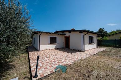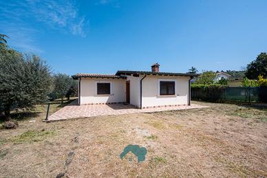 Thinkhome propone in vendita una meravigliosa villa unifamiliare con giardino a Gallicano Nel Lazio, in Via Valpantano. La villa è disposta su un unico livello e sviluppa una metratura totale di 100 mq. Internamente è composta da salone con camino, cucina a vista, tre camere da letto di cui una matrimoniale con cabina armadio, due bagni e soppalco utilizzabile come ripostiglio. Gli ambienti sono molto arieggiati e luminosi grazie alle ampie finestre che si affacciano sul giardino. La villa è stata edificata negli anni 2000 e tra le varie rifiniture interne troviamo materiali di qualità come finestre in legno doppio vetro, grate in ferro, persiane in legno, e soffitto in legno castagno a vista. Completa la proprietà il terreno pianeggiante di circa 1000 mq, completamente recintato e con ampio fronte strada la quale garantisce una facile accessibilità. Utenze acqua diretta, gas bombolone, fossa biologica. Ubicazione ideale in contesto residenziale, immerso nel verde e nella tranquillità con il centro e i servizi di prima necessità facilmente accessibili.