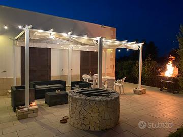 Vendo bellissima villetta con 2 camere, Soggiorno e servizi con un giardino di 900 mq fronte strada.Termosifoni, climatizzatori, impianto di videosorveglianza, pozzo di acqua sorgiva e cisterna di 50 quintali.Giochi bimbi e piscina da montare .