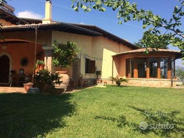 Genazzano, in posizione strategica e panoramica proponiamo in vendita villa unifamiliare di ampia metratura sapientemente rifinita e con grande cura in ogni dettaglio. La proprietà si compone di una zona giorno con ampio salone con termocamino, sala da pranzo con travi in legno a vista e vetrata, studio , cucina in muratura e bagno; zona notte da un disimpegno , tre camere da letto e bagno. Ampio portico al piano terra. Mansarda da rifinire al primo piano. Due ampi locali, cantina e locale caldaia al piano semi interrato. Completa la proprietà un' ampio locale agricolo di circa 180 mq (con possibilità di cambio di destinazione urbanistico). La villa è stata oggetto di un'accurata ristrutturazione e presenta ampi spazi vivibili e luminosi circondata da un terreno curato di mq 22500 c.a. con entrata carrabile. La villa è dotata di un doppio impianto di riscaldamento, sia con termocamino che con caldaia a gpl, pozzo con acqua potabile, fossa biologica e antifurto La proprietà in oggetto per la sua metratura, ubicazione e ristrutturazione risulta essere ideale sia come prestigiosa dimora di residenza che come struttura turistica- ricettiva. Possibilità di PERMUTA