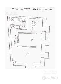 Il piano terra con altezza di circa 5 m, destinato a locale deposito è di circa mq. 40,00, più due piccoli vani di circa 6.00 mq; attraverso un vano scala interno si accede al primo piano di circa mq. 46, composto da 2 camere più bagno.