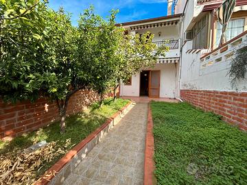 La villa si sviluppa su due livelli, con una superficie interna di 55 mq. Al piano terra si trova un ampio giardino di circa 40 mq che ci conduce all'ingresso su un accogliente soggiorno con camino, ideale per trascorrere piacevoli serate in compagnia di amici e familiari. La cucina, separata dal soggiorno, è spaziosa e luminosa, ed affaccia sul cortile retrostante di circa 20 mq. Un bagno con lavatrice completa il piano terra.