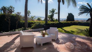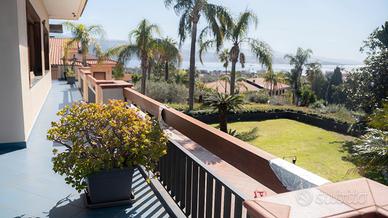Giardino sui Laghi, prestigiosa villa panoramica. Immersa nella suggestiva cornice del Lago di Ganzirri, questa prestigiosa villa incanta per la sua struttura e le sue caratteristiche. E' definita da un'architettura elegante e raffinata, vantando una serie di comfort esclusivi che la rendono un'oasi di lusso e di benessere. All'interno, spiccano dettagli di pregio che rendono l'abitazione moderna e funzionale. Gli ambienti si distribuiscono su tre livelli, le stanze sono ampie e luminose con grandi vetrate panoramiche, garantendo i propri spazi di privacy e relax ma anche importanti momenti di vita familiare e sociale. Il piano terra si compone di un sontuoso salone triplo con camino, due spaziose camere, cucina abitabile, doppi servizi e ripostiglio; al primo piano troviamo la zona notte con quattro camere da letto e doppi servizi; all'ultimo piano un'ampia mansarda con terrazzo. A fare da padrone è il grande giardino di circa 1000 mq, con cancello privato, che circonda la villa sui quattro lati, uno spazio verde e ideale da vivere durante la stagione estiva ma anche caratteristico e singolare durante l'inverno, grazie alla possibilità di arredarlo con gusto e fantasia. L'esposizione è unica e panoramica da ogni lato della dimora, i grandi terrazzi permettono di godere di un'esclusiva vista su mare e lago. E' una soluzione ideale per chi cerca una dimora di lusso in una zona prestigiosa ed in un contesto signorile, un'opportunità unica per vivere in un ambiente di classe e raffinatezza. Per maggiori informazioni contattaci al numero 090.34.32.01 o utilizza il servizio di Whatsapp al numero 392.95.17.582.