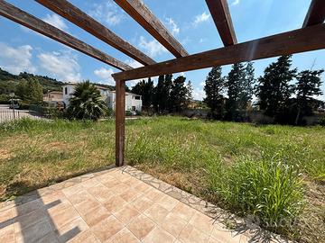 Primo Piano: Un disimpegno conduce a due luminose camere da letto, una cameretta e un bagno completo con doccia. Completano il piano due balconi che offrono sfoghi esterni e un pratico pergolato attiguo alla cucina al piano inferiore.