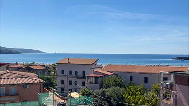 Lo stabile, situato a pochi metri dalla spiaggia e dalla piazza centrale, è dotato di due ingressi, uno pedonale nella via Grazia Deledda ed uno carrabile nella via Palermo con accesso ad un grande terreno edificabile in parte piantumato.