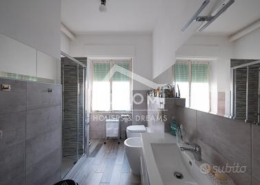 Al piano primo (frontalmente piano secondo rispetto il piano strada) due ampie camere matrimoniali di oltre 18 mq ognuna, due bagni ristrutturati, soggiorno con terrazza a livello con parziale vista mare, cucina.