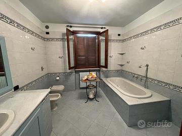 A due pedalate da Crema in zona residenziale di sole ville , disponiamo bellissima villa bifamigliare con ampio giardino privato piantumato con impianto d'irrigazione automatica. L'immobile è cosi composto: piano terra ingresso, soggiorno con camino, cucina abitabile, lavanderia, ampio box, cantina, portico, piano primo tre camere, bagno padronale con box doccia e vasca, due balconi. Infissi in doppio vetro e antoni in legno, climatizzatore, autoclave, caldaia a condesazione.