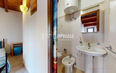 Completa il livello un bagno essenziale con area lavanderia, funzionale e ben organizzato.