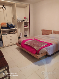 A sinistra accediamo alla spaziosa camera matrimoniale , mentre il disimpegno ci porta al bagno con doccia non finestrato e ad un locale lavanderia, dal quale sul retro , usciamo su una piccola corte di proprietà .