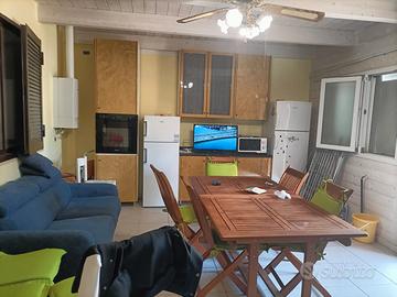 ampia veranda esterna di 40mq dove trascorrere bellissime serate in compagnia dotata di Barbeque, Ripostiglio e Tenda da sole per comodi pranzi all'esterno; un vano cucina dotata di ogni confort; zona notte composta da 1 camera da letto ed una ampia zona intermedia con altri 2 divani letto; 1 bagno dotato di box doccia e lavatrice.Sia la zona giorno che la zona notte sono dotate di riscaldamento e di climatizzatori inverter.