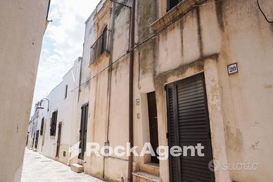 Rif:157588 - 27/03/2026 (127825436) - Situato nel caratteristico borgo di Carpignano Salentino, questo terratetto unifamiliare si trova in Via Lelio Vincenti. Gode di posizione e affacci su due lati paralleli, offrendo così una buona esposizione alla luce naturale. I vicoli in cui è inserito si sposano perfettamente con il contesto residenziale tranquillo, ideale per chi cerca un angolo di serenità garantito dal posizionamento nel borgo antico, inibito al traffico non pedonale. L'immobile dispone di 4 diversi accessi e si sviluppa su due piani, pian terreno e primo piano, con una superficie commerciale di circa 95 metri quadrati. All'interno, la casa dispone di due camere da letto con volte a stella al pian terreno e un monolocale mansardato al primo piano. Su quest'ultimo è stata avviata una parziale ristrutturazione. Tipiche chianche del luogo possono essere recuperate nel completamento di questo delizioso angolo, dotato di ampio e antico camino per fornire un ulteriore tocco di calore e tradizione all'ambiente. Necessitando di una ristrutturazione completa, l'immobile si presta ad ampie possibilità di personalizzazione secondo gusto e necessità, risultando ideale per una famiglia o per chi desidera avere spazio extra per ospiti o per un angolo studio domestico, o ancora per uso investimento. L'ampia metratura e composizione interna consentono, ad esempio, la realizzazione di 3 ambienti distinti grazie ai 4 ingressi indipendenti, di cui uno con giardino, attualmente mattonato. La cucina è abitabile e due bagni essenziali sono al servizio dell'intero immobile. Un piccolo balcone e un terrazzino offrono spazi esterni aggiuntivi e una splendida vista sul borgo antico. La proprietà si completa con una cantina con ulteriore accesso indipendente, dotata di caminetto, da utilizzare come locale pertinente all'uso che si vorrà fare dell'abitazione. Il giardino privato, ex ort
