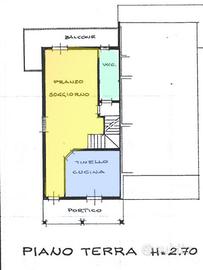 La distribuzione interna vede ingresso , grande sale con camino ventilato, cucina abitabile e bagno ;